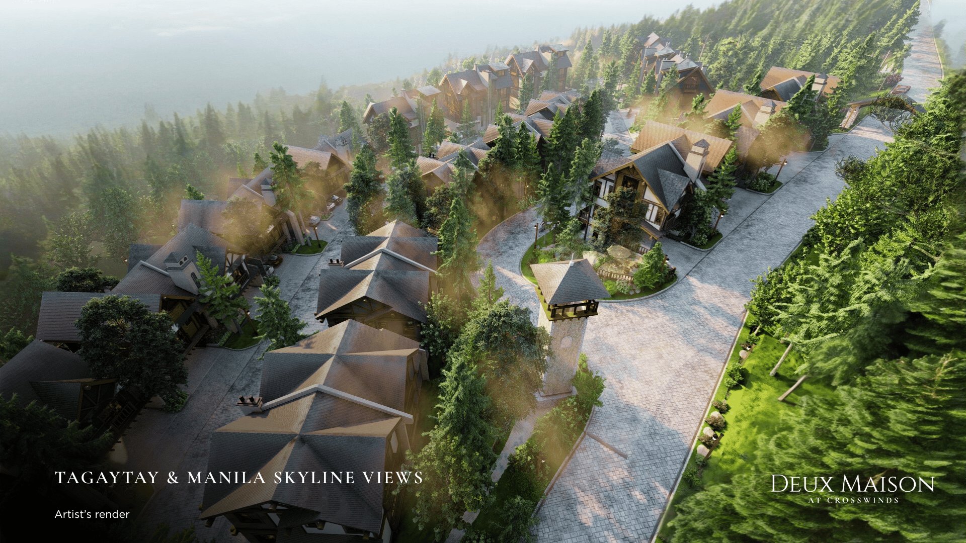 Set within a breathtaking community of over 35,000 pine trees, each residence is embraced by cool mountain air and a serene forest environment. Designed with sloping roofs, expansive windows, and nature-inspired finishes, every home captures panoramic views of Tagaytay and the Metro Manila skyline, offering a living experience that is both tranquil and inspiring.