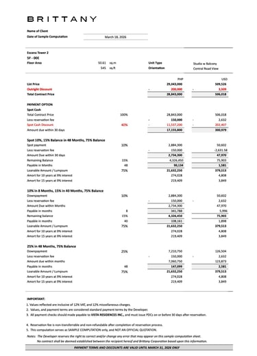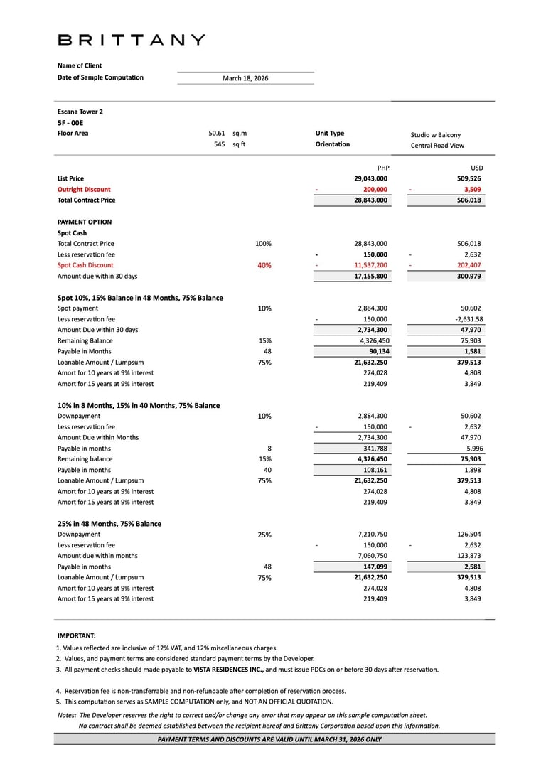 Unit Layouts at Escana Boracay