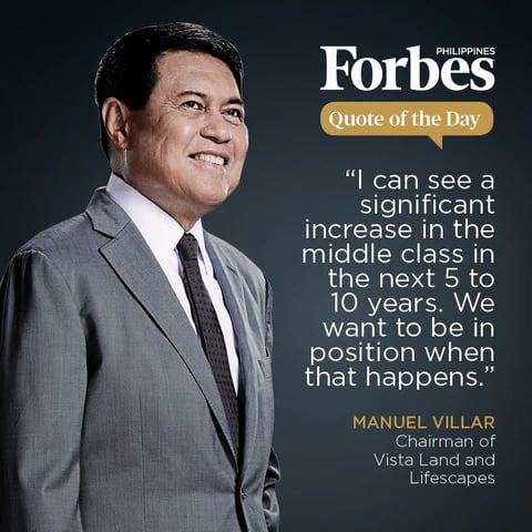 Manny Villar is the Chairman of Vista Land & Lifescapes, Inc., one of the largest integrated property developers in the Philippines. His journey from modest beginnings to becoming one of the country’s leading business figures reflects resilience, vision, and strong entrepreneurial leadership.