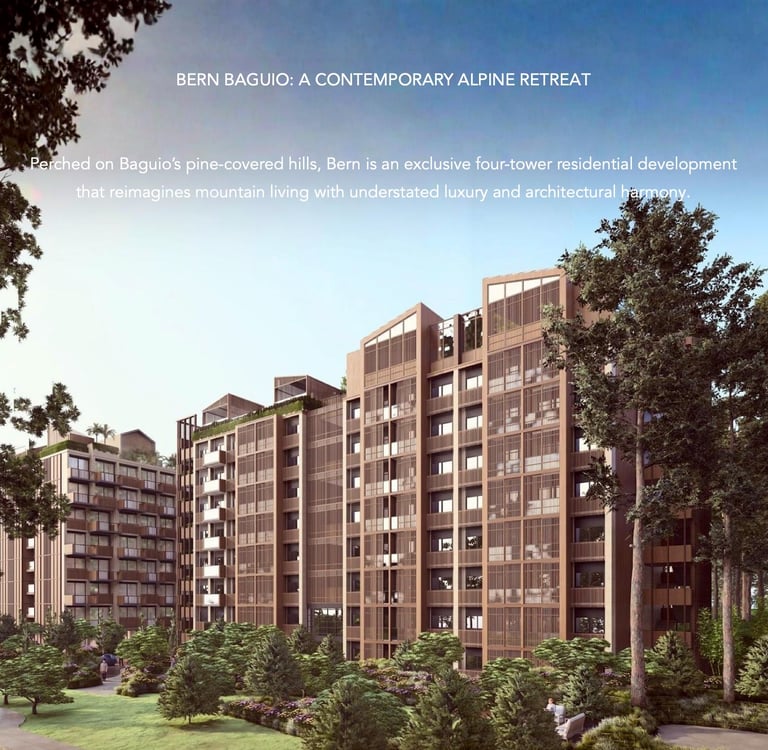 Set amidst the cool pine landscapes of Baguio, Bern Baguio by Brittany Corporation offers a refined alpine sanctuary designed for those who value privacy, exclusivity, and timeless elegance.