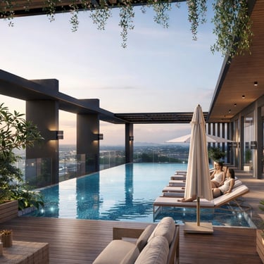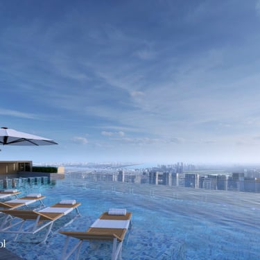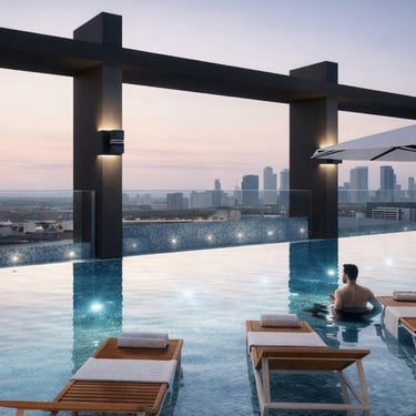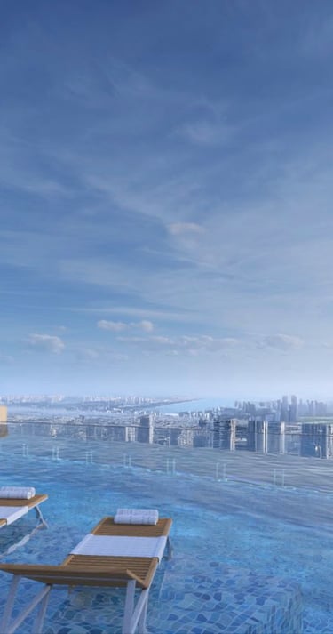 At the pinnacle of the tower, the infinity skydeck pool offers a breathtaking retreat above the city—where panoramic skyline views meet serene relaxation. Whether for leisure or quiet reflection, this elevated sanctuary provides an exclusive escape reserved for a privileged few.