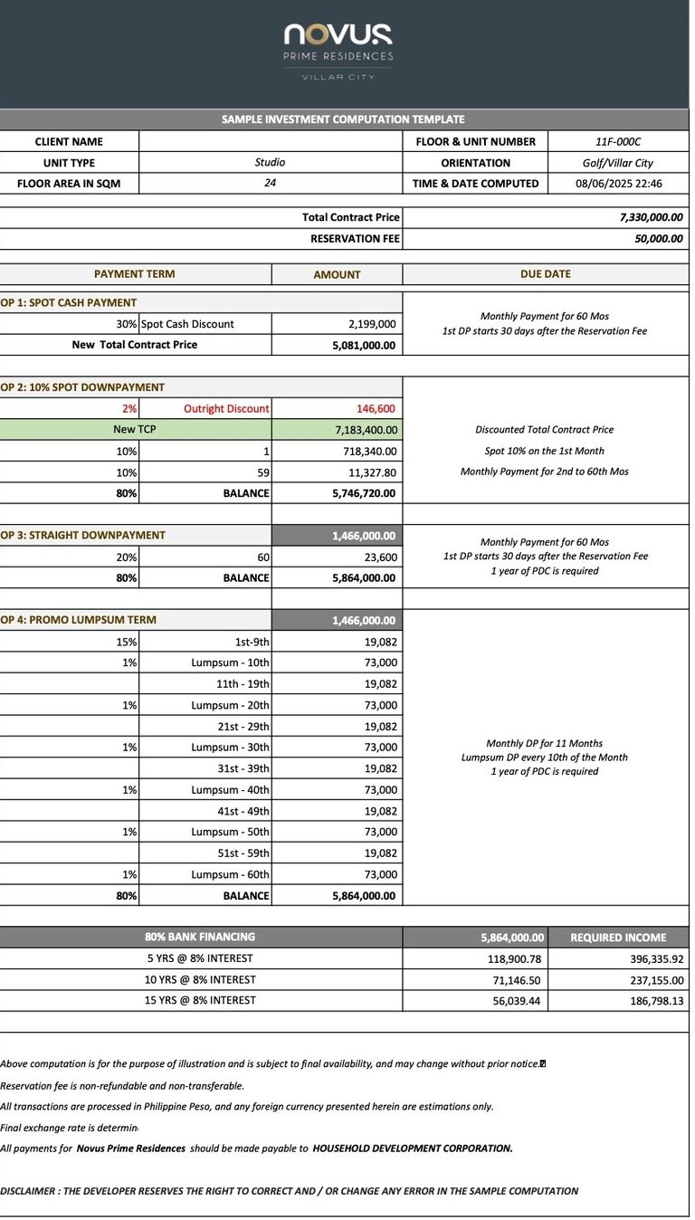 Developed by Vista Land (CROWN ASIA), Novus Prime Residences is designed for discerning investors seeking a premium urban asset in a future-ready location. Its prime setting, integrated community environment, and proximity to business centers make it an ideal choice for both local and international investors looking to secure long-term value in one of the Philippines’ most ambitious and transformative developments.
