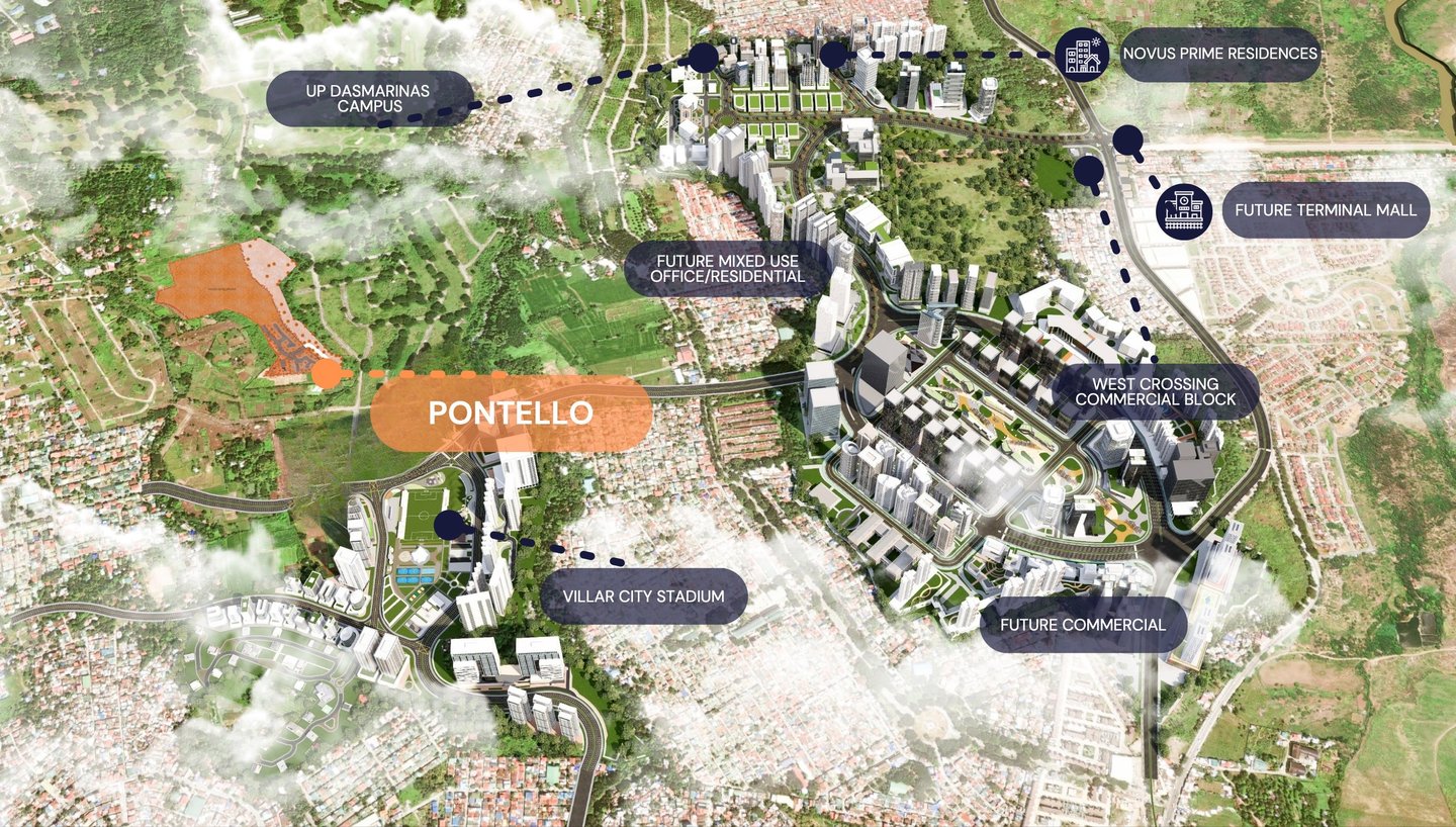 Set within the visionary expanse of Villar City, Pontello by Crown Asia rises in one of the most coveted and master-planned districts in the South—University Town, a refined enclave where innovation, culture, and elevated living converge. This location places Pontello at the heart of a modern megacity spanning thousands of hectares across Cavite and southern Metro Manila, envisioned as a self-contained urban hub of residential, commercial, and green spaces designed for the country’s most discerning homeowners.