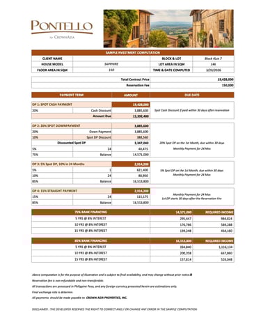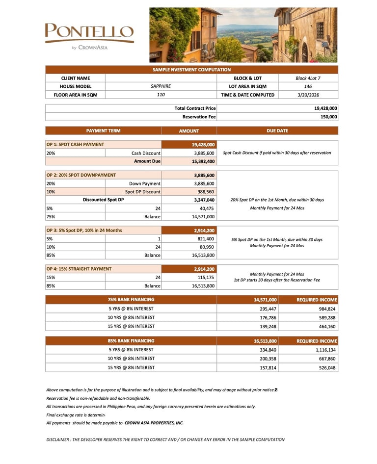 Pontello enjoys a strategic yet discreet location with access to the region’s most important expressways—including MCX, CALAX, CAVITEX, C-5 Extension, and SLEX—allowing residents to move effortlessly between the serenity of their private sanctuary and the dynamic opportunities of Metro Manila and key cities in Cavite and Laguna.